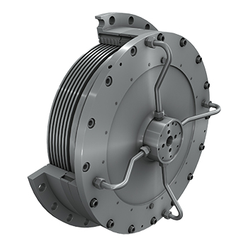 As embreagens e freios hidráulicos operam com placas resfriadas a óleo em um sistema de "funcionamento úmido", utilizando um par de fricção de aço/sinterizado. O acionamento com pressão de óleo a 80 bar, a configuração multidisco e o par de fricção de alto desempenho proporcionam um design compacto e eficiente. Esses componentes apresentam elevados torques, baixa inércia, tempos de comutação rápidos e exigem pouca manutenção. A construção separada permite a instalação de diferentes tamanhos de embreagens e freios, sendo que, por funcionarem em um compartimento selado, não liberam sujeira no ambiente.